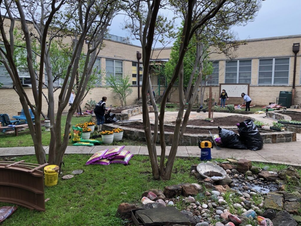 The Maple Lawn Elementary Garden Beautification Project focused on the school’s north Dallas campus, where approximately 500 pre-K through fifth grade students attend. Our volunteers removed existing landscaping and installed flowers and classroom growing spaces, transforming the area into a beautiful outdoor garden for both students and teachers to enjoy. Lowe’s Home Improvement company sponsored the project.