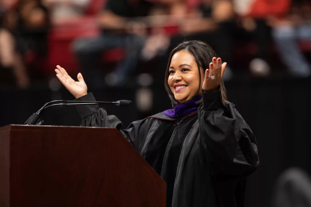 Linebarger Managing Partner Bridget Moreno Lopez was honored to serve as the keynote speaker addressing graduates at Texas Tech University School of Law’s 2022 Commencement Ceremony. In her address to the law students of her alma mater, Lopez recalled the story of her upbringing in West Texas, her aspiration to attend to Texas Tech one day, and her desire to achieve greatness there. Despite encountering small bumps in the road, Lopez achieved good marks in her first undergraduate semester at Tech and considered whether a more inclusive student population might ease the path for the students of color that followed her.Â